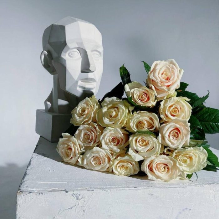 Букет из 15 высоких кремовых роз