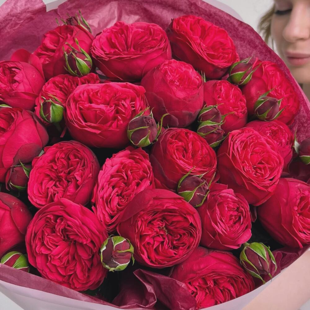 Букет из красных пионовидных роз