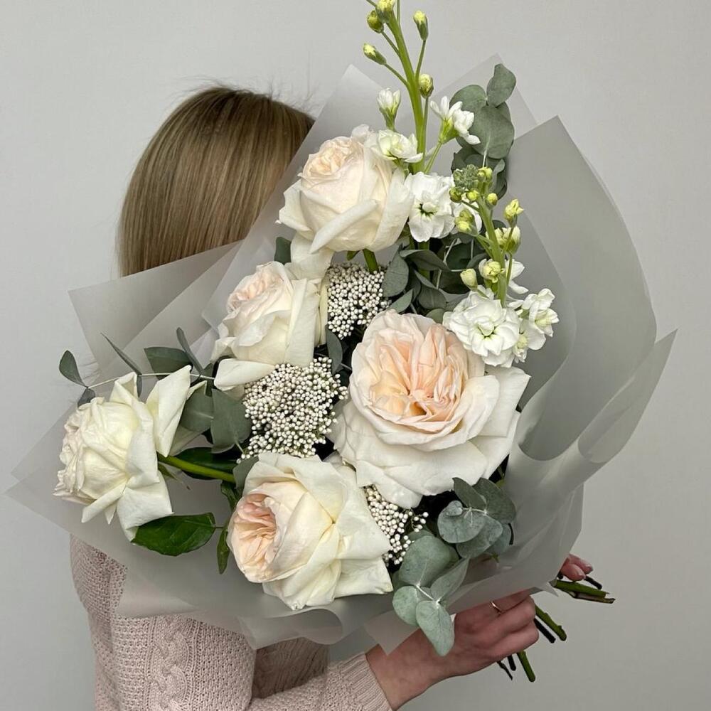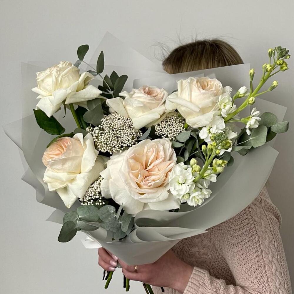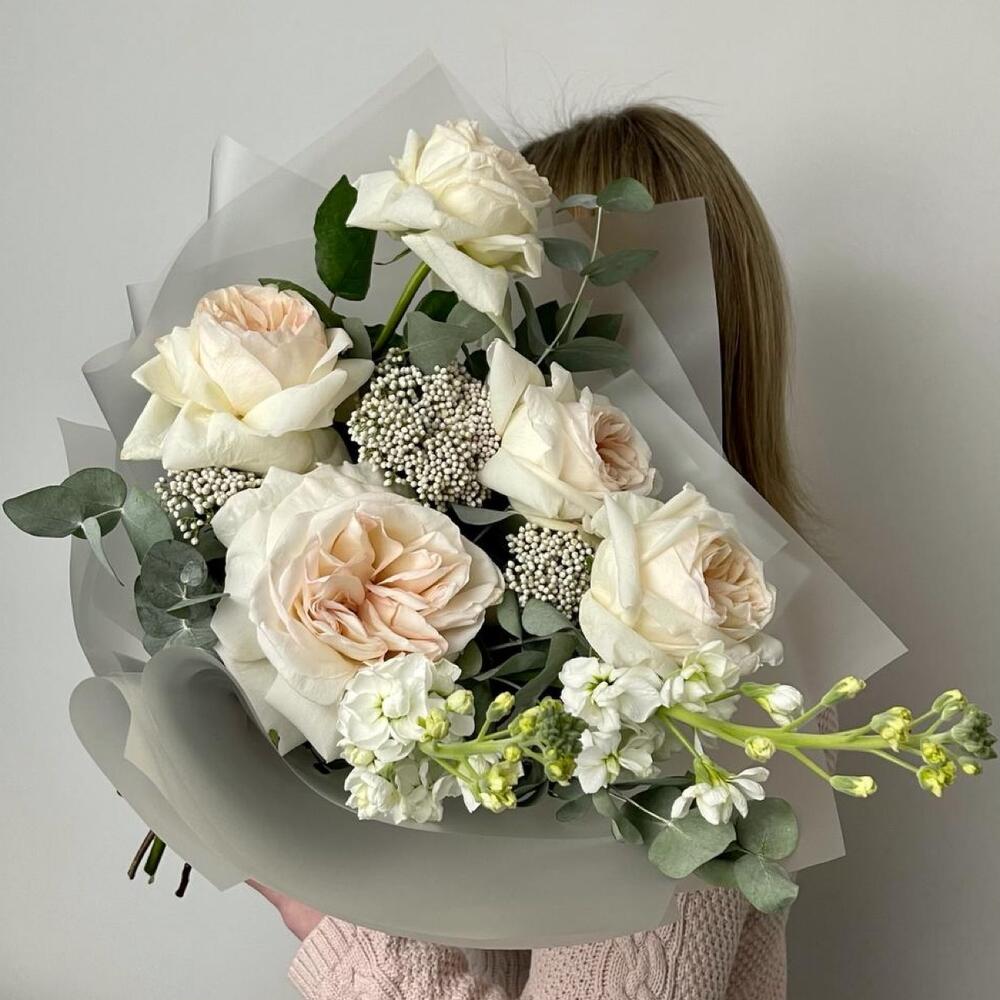Альстромерии, Кустовые розы, Лизиантусы, Пионовидные розы, Розы, Ромашки
