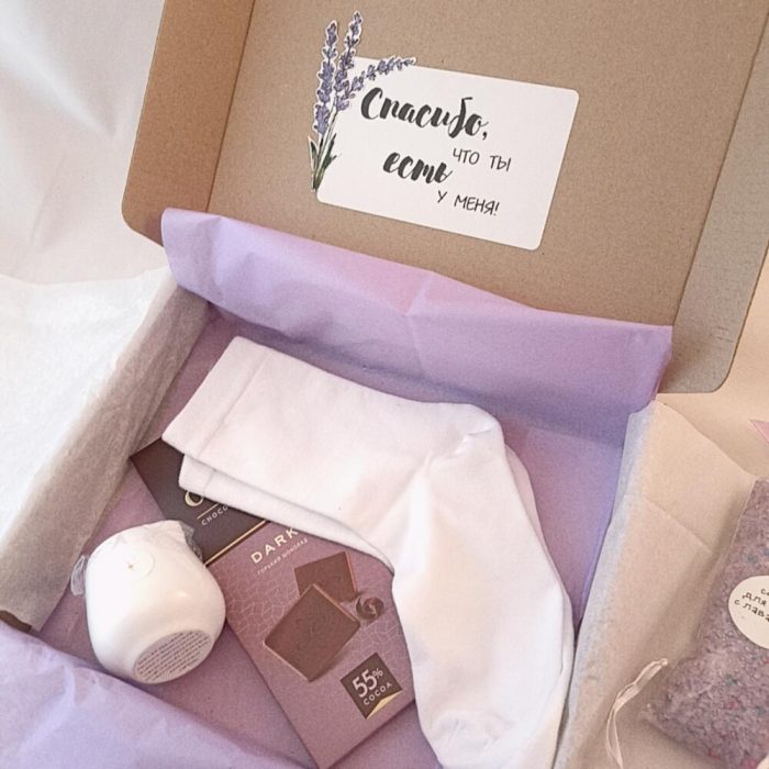 Лимитированный набор подарков для особого случая, который оставит приятные воспоминания. Набор подойдет для ценителей изящества и нежности. От упаковки до состава подарок собран с любовью своими руками❤В подарочный бокс входит: Соль для ванны с ароматом лаванды и пенными гранулами – лучший друг утра, дня и вечера. Уход за кожей, ароматерапия и спокойствие в одной упаковке – мы точно победим быстрый ритм жизни Набор красивого мыла в виде розы, милого мишки, пирожного макарон и зефирки с приятными ароматами розы и сладкого молока. Небольшой тканевый мешочек-саше с цветами лаванды Лепестки роз для ванны. Love is in the air Массажная свеча – очень приятное средство для ухода за собой. Тёплое расплавленное масло втирают в кожу, например после душа. Состав массажной свечи: масло ши, масло какао, масло бабассу, соевый воск, эфирное масло лаванды Женские хлопковые носочки (до 40 размера), достаточно плотные, приятные на ощупь, с большим содержанием хлопка. Зеленый чай Юй Лун Тао: чайные листья в форме бутона, при заваривании превращаются в хризантемуПодарок разбавят приятные дополнения (ведь так интересно, когда открываешь коробку, а там столько всего, что глаза разбегаются): Два Чокопай со смородиной Плитка тёмного шоколада Подарочная крафтовая упаковка с надписью Спасибо, что ты есть у меня!Подарите близким тепло и заботу одним правильным набором от Love&Post Наш нестандартный подарок придётся по душе каждой дочке, жене, маме, бабушке, любимой девушке или коллеге. Также поможем удивить отцов, дедушек, сыновей или внуков. Ведь пол и роль не важны, зато бывает так важно подарить чуточку внимания и тепла) А у нас есть все, чтобы помочь Вам с этим ❤Чтобы создать свой идеальный подарочный набор, Вы можете изменить состав или сделать свой эксклюзивный набор подарков:-добавить открытку в конверте или без, в которой мы напишем Ваше поздравление- выбрать имбирные пряники с поздравлениями или просто с красивой картинкой- дополнить подарок, положив в него: чай, брошь, украшения, сумку – шоппер, блокнот, макаронс, крем, маску для лица, мыло ручной работы – стараемся воплотить любые идеи- заменить то, что есть в набореДля этого пишите нам Если Вы добавляете позиции к набору, мы бесплатно поменяем упаковку на размер побольше и оформим в том же стиле, что и упаковка в товаре. Обязательно пришлëм фото по готовности К каждому заказу кладëм сладкий комплимент. Можем собрать набор, оформить коробку или крафтовую объëмную фигуру, подобрать подарки в цвет, сделать красивый креативный (необычный, оригинальный), романтичный, полезный (практичный) или шуточный (юмористический) набор на любую сумму индивидуально для Вашего торжества Сет подарков для женщин, для подростков, для женщины, подарок для жены, подарочный бокс для любимой, коробка с подарками для девушки, презент для коллеги, мамы, матери, бабушки. В качестве комплимента, презента, подарка, в женский день, на день рождения, годовщину, на год отношений, для праздника , роскошный подарок для важного события.