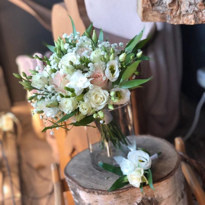 Кустовые розы, Лизиантусы, Розы, Сухоцвет